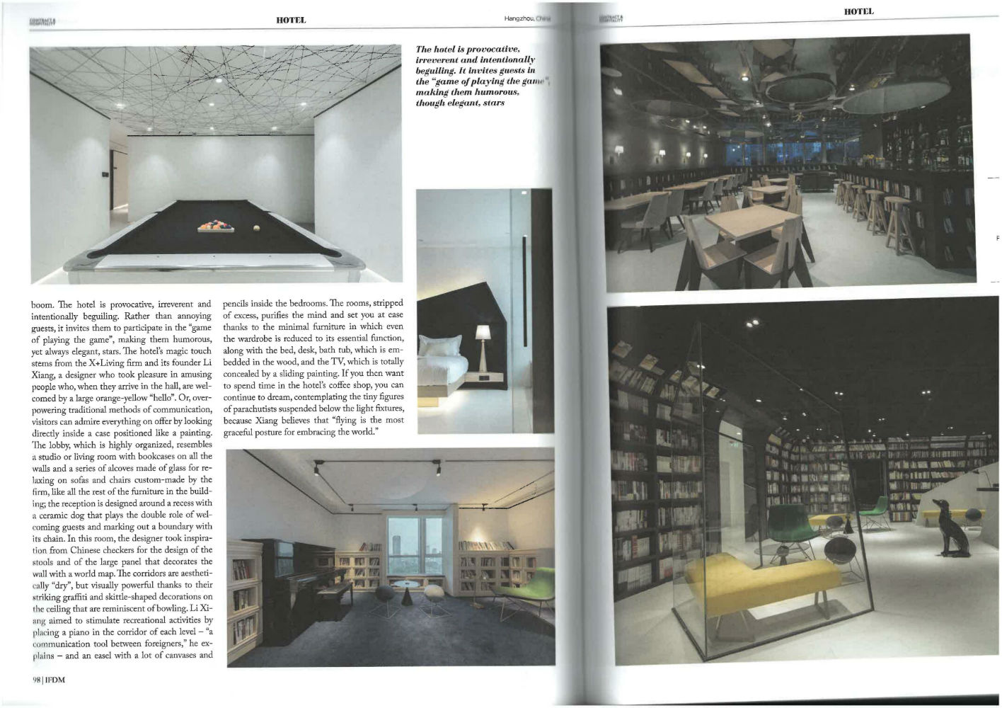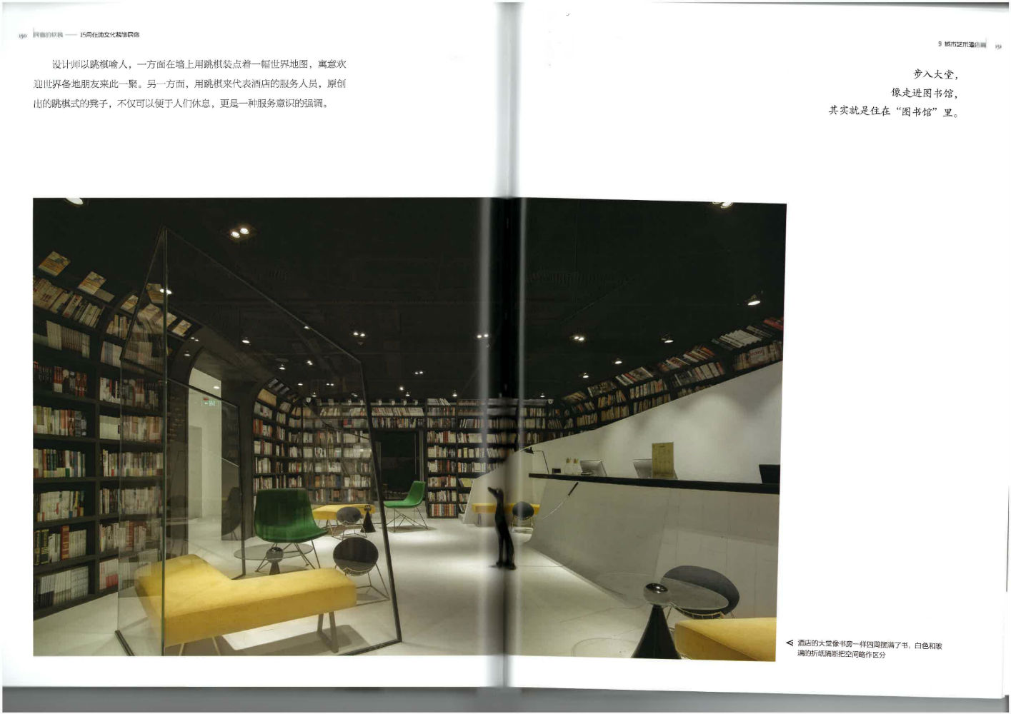 The designer uses music, painting and reading which are loved by people in our daily life to decorate the whole atmosphere of the hotel. There is piano in the corridor of every floor, this allows guests to amuse themselves and share the charm of music and take music as a tool of silent communication between strangers.