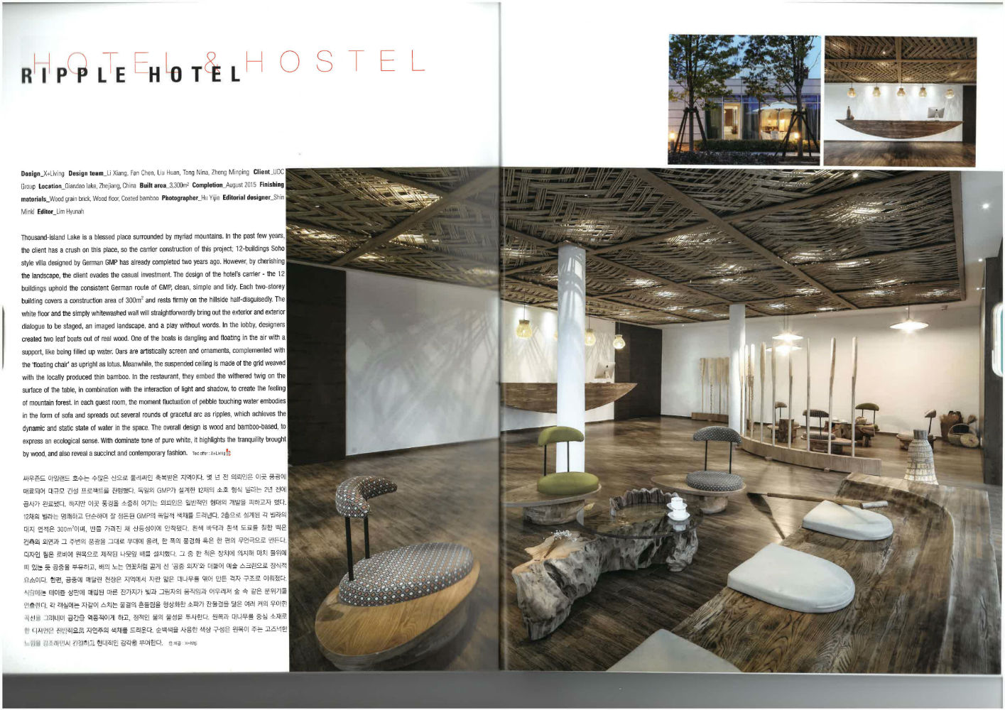 In each guest room, the moment fluctuation of pebble touching water embodies in the form of sofa and spreads out several rounds of graceful arc as ripples, which achieves the dynamic and static state of water in the space. We selectively look for a tree, a vine, a pebble, and a creel and carefully put them to their due places as the destined emergence to fill out the primary and secondary roles of the entire composition.