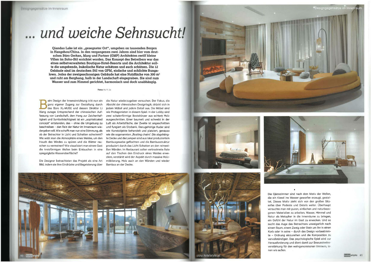 The design of the hotel's carrier – the 12 buildings uphold the consistent German route of GMP, clean, simple and tidy. Each two-storey building covers a construction area of 300 m2 and rests firmly on the hillside half-disguisedly. Overlooking the water and sky, it seems both harmonious and independent. This premise, in my opinion, is more challenging than the fast design and construction as required by the Employer.