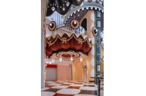 The designer breaks through the traditional decorative aesthetics and built those stationary-shaped structures in a scale of magnificent architecture such as books, table lamps, phoenix tail clips and rulers, creating a unique immersive experience in the children-themed area. The huge scale contrast between the giant construction and the daily items not only better coordinates the balustrades, lightings, store façade and guiding signs in the public area, but also creating a fairy tale atmosphere and accurately capture the attention of target customers.