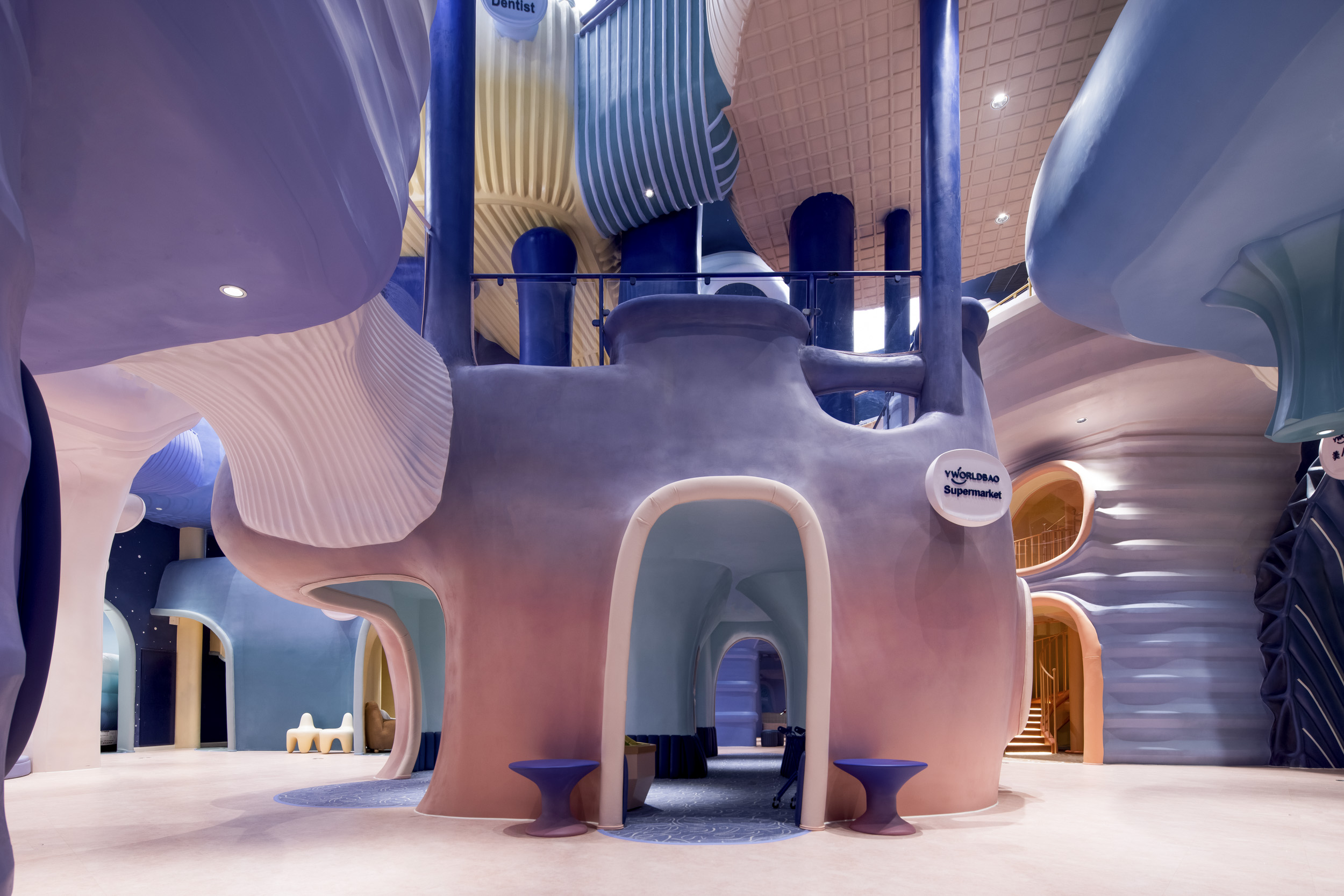 Entrusted by the parent-child cultural and entertainment brand YWORLDBAO, X+Living renovated an old factory into a large-scale artistic and aesthetic children’s playground. The interior floor height of the factory building and the birth of the new brand aroused the designer's imagination, and an infinite blue ocean emerged as the conceptual idea.。