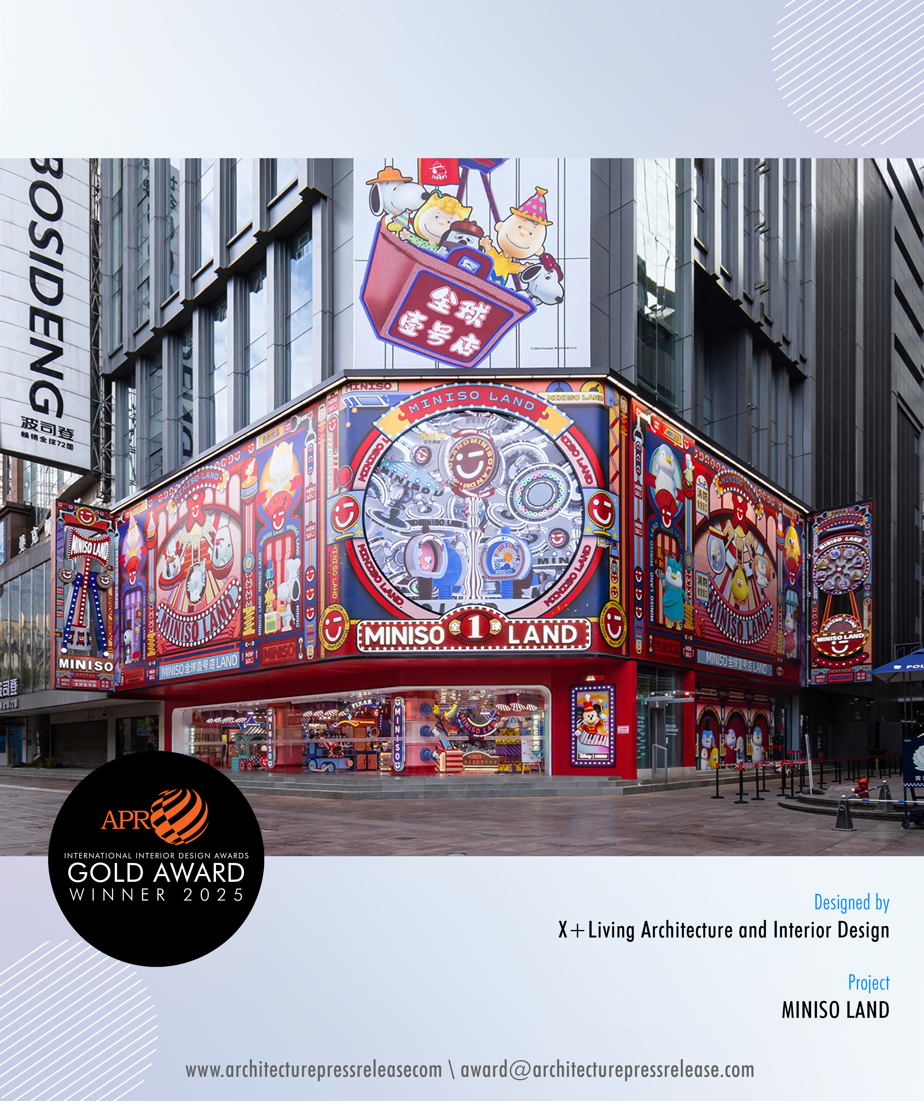 Recently, the winners of the 2025 APR IID International Interior Design Awards were announced. X+Living won the highest Gold Award in the Retail Interior category for its design project MINISO LAND. Other renowned design firms selected for honors include ECADI, Ltd. and YANG & ASSOCIATES GROUP.
