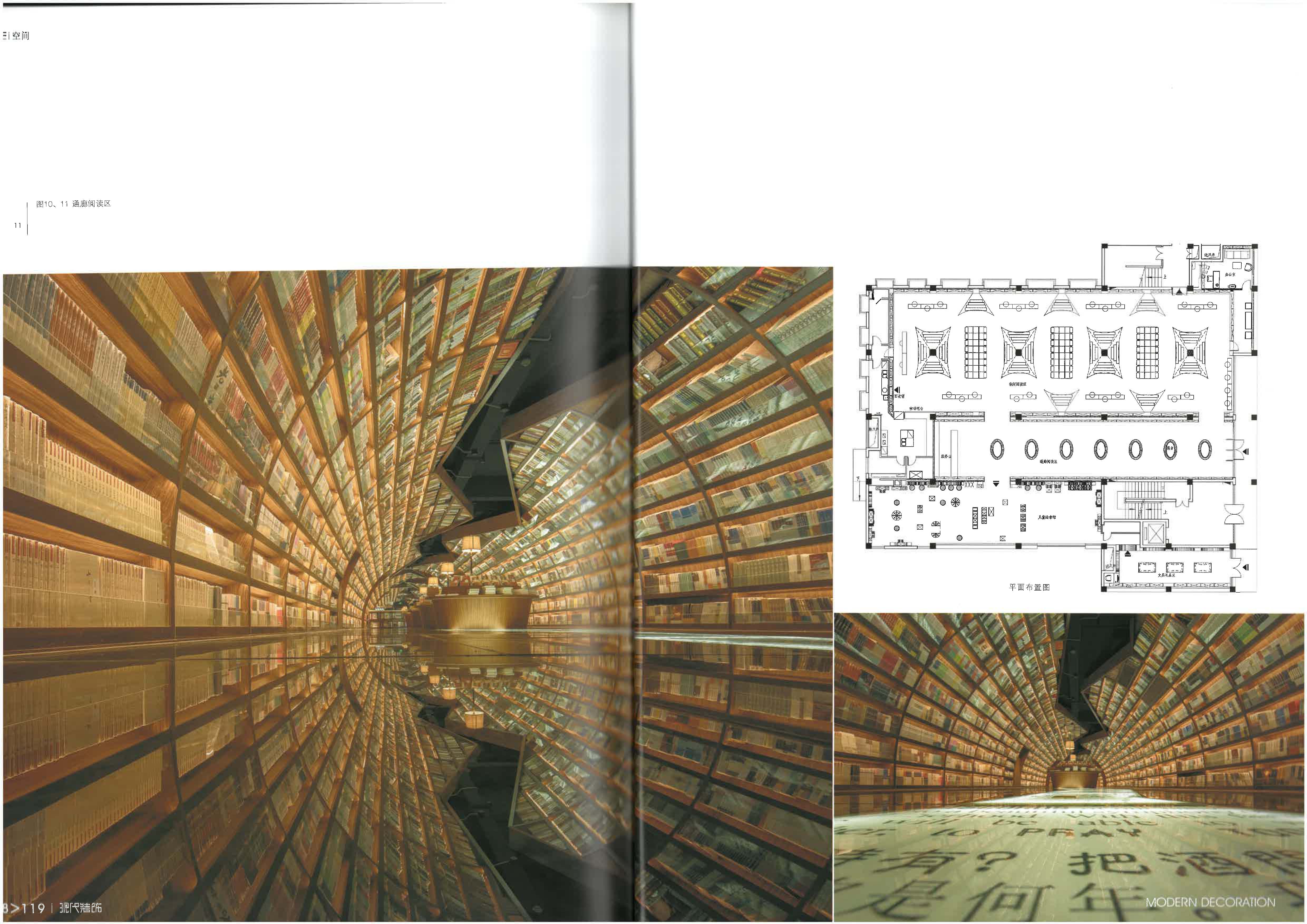桥梁右侧则是更加广阔的书籍之地,设计师研究拱桥及河流的关系,得到了一个上下镜像的空间关系,利用各种拱形连接各个区域,让读者进入空间时能充分感受其震撼力。