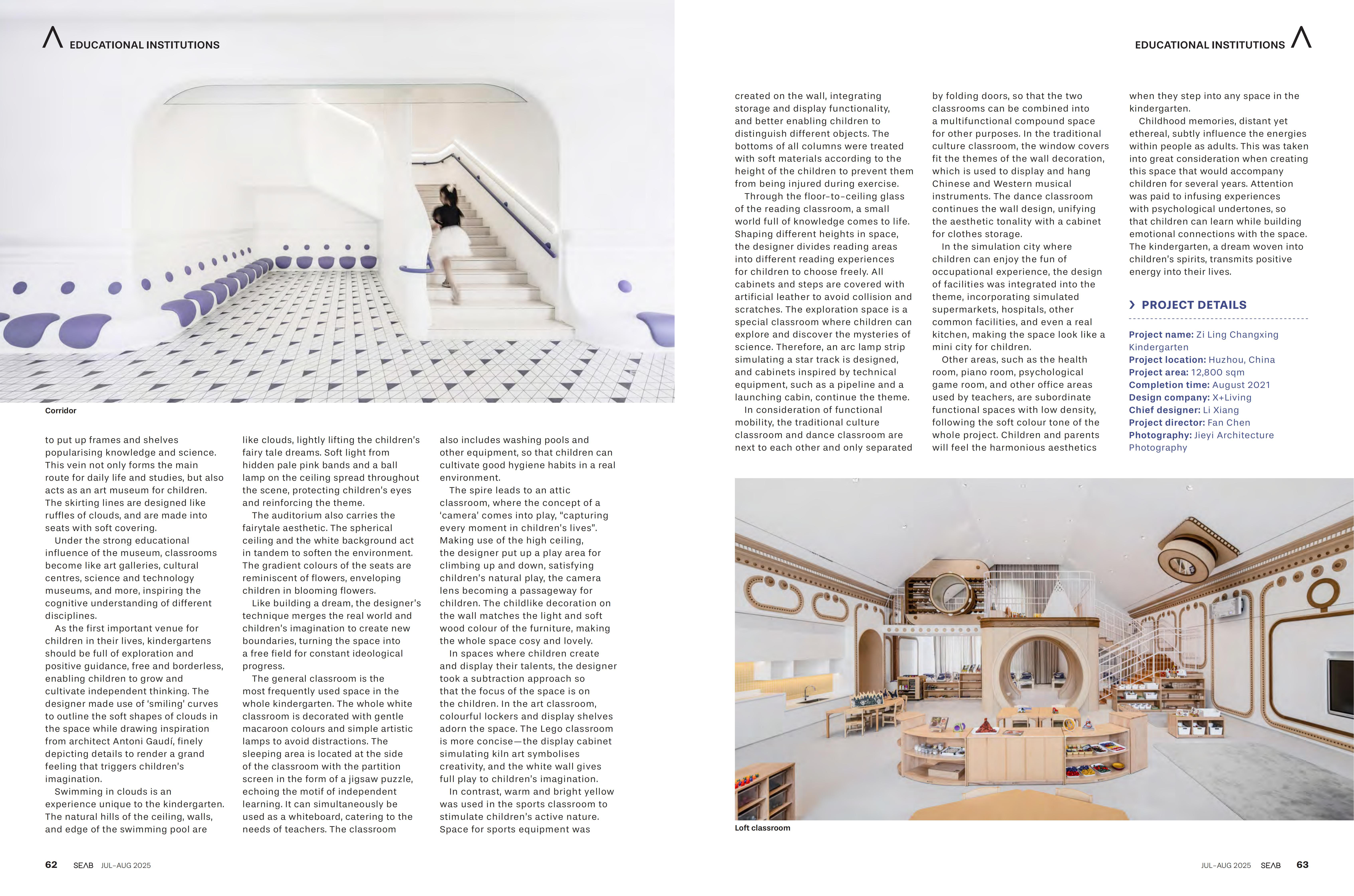 学龄前的幼儿教育是人生中重要的第一堂课,孩子们开始理解他人与社交,肆意地用身体去触碰与感知这个世界,在交互中体悟爱,养成或将影响一生的思维方式。于是,这样的空间应该是充满探索引导性的,自由而边界模糊的,孩子们要在追求思想自由性的世界里,在不断的变换中完成成长的交换。