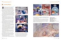 抽象出珊瑚的形态,再重构为一座座烂漫的珊瑚房子,彼此连结,簇集为千姿百态的珊瑚礁乐园。天花板上的夜空星光安静洒落,珊瑚悄然呈现着夕阳余晖下渐变的多彩。高约十米的模拟城下,设计师打造出一场属于深海的神秘盛会,孩子们沿着流畅的动线穿梭于立体层次丰富的模拟城,如一只只漂浮在珊瑚礁中的小鱼,探索眼前应接不暇的新奇风光,体悟海洋作为生命摇篮的伟大。