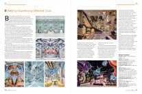 海水在场地中温柔蔓延,缤纷的异形桌椅从地上生长,构建一个个海底珊瑚群落簇拥而成的小小生态,柔和的色彩搭配和半包围的小区域划分营造温馨和谐的餐厅环境。不规则的家具放置逻辑体现自然界生态的无规律感,小景观的变化丰富观察的趣味。两侧昆虫翅膀与机械元素的有机组合是前厅主题的延续,复合元素经由镜面天花投射出一个曼妙又奇异的梦幻海洋世界,深远悠长的气场在场域中弥漫。