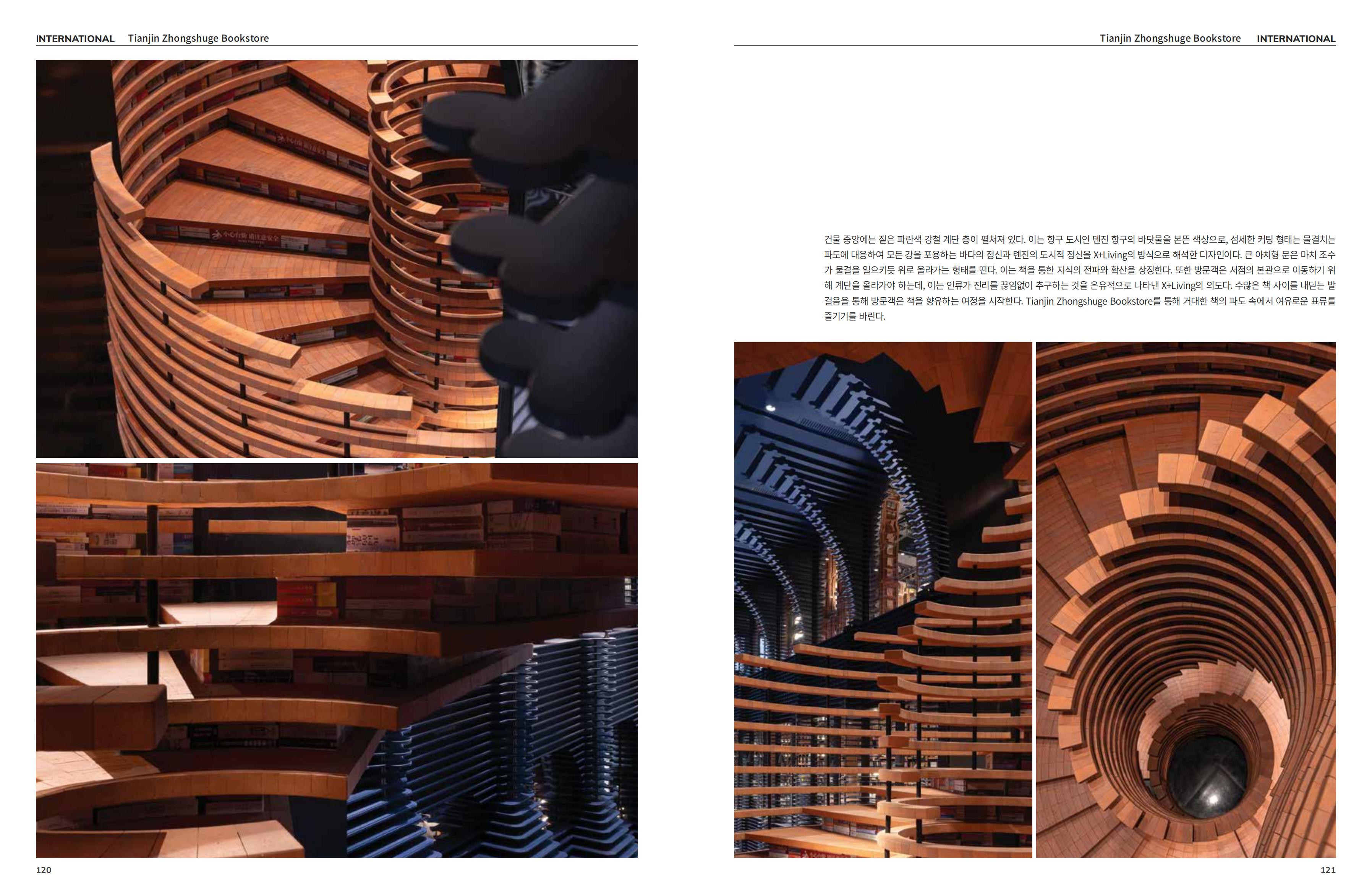 甫一踏入书店,层层阶梯递升、延伸、深进。人必须登阶而上,才能过渡进入书店主体,暗喻着人类对真理孜孜不倦地追求。人的脚步移动,精神则在书籍中跋涉,身心同行追索。阶梯顺势伸展出书架,迭进的形态暗示港口城市的在地特征——船只出港,多元的思想被海负载,走向深远之处,因此路径一直向前。
