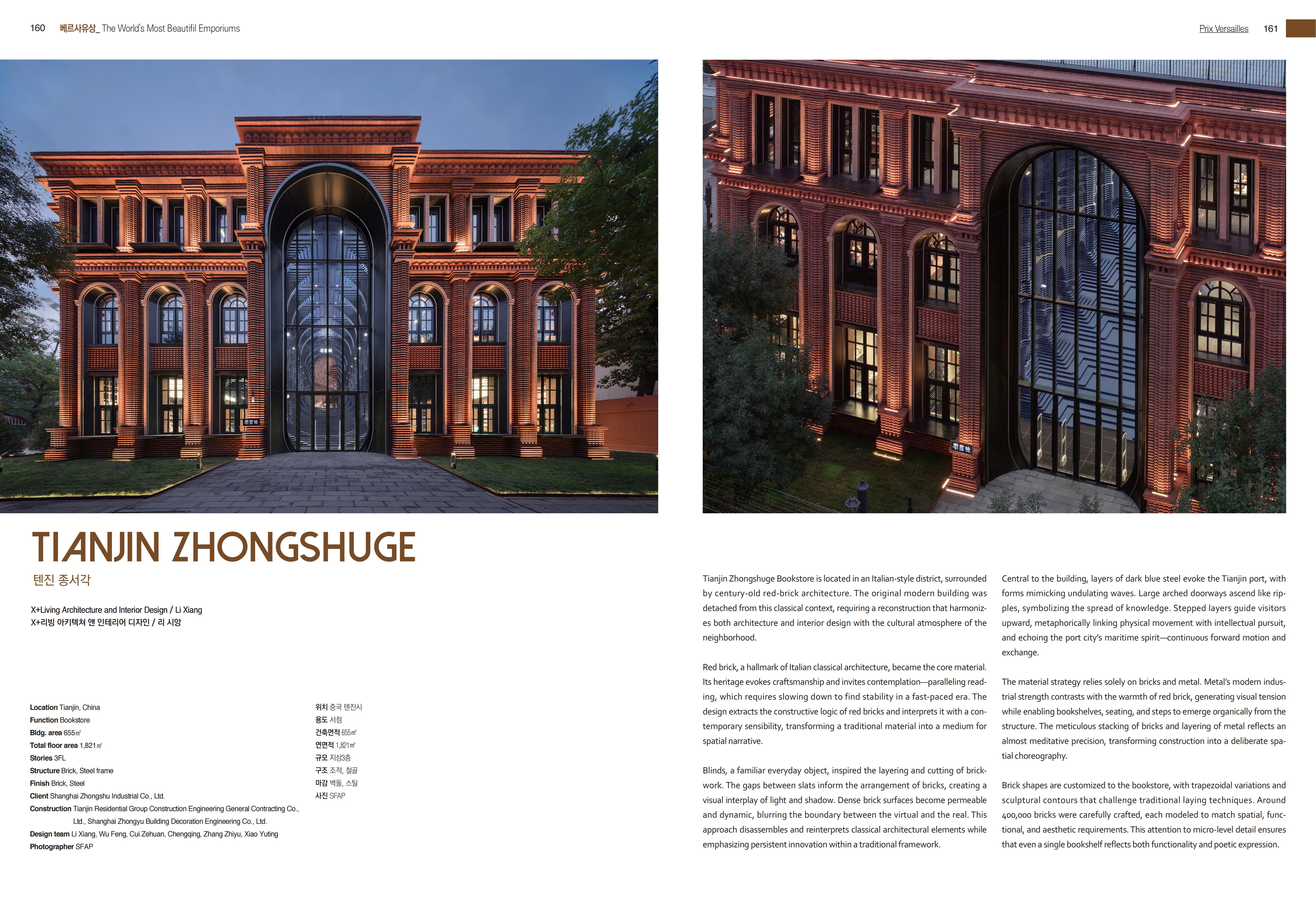 项目位于天津市意式风情区,周围林立着以红砖为特征的意大利百年建筑群落,原址是脱离周围古典语境的现代建筑,天津钟书阁需要将之重新改建。这不仅要求单体建筑与室内设计的一体化考量,同时要契合街区文化氛围。
