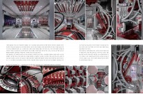 礼物区展台以MAC魅可经典产品包装为原型,保留产品辨识度,又赋予空间戏剧化叙事,通过工业美学与实用功能的动态平衡,将商业行为转化为可感知的品牌美学体验。多功能活动区以天花悬垂的一截钢琴机械构建作为叙事线索,引导顾客的探索动线。落位于四角的一体式化妆台,以MAC魅可产品包装为原型,巧妙融入了可开合式镜面柜及可抽拉式化妆椅。可变形态的灵活设计,让空间在艺术展陈与商业活动自由切换。